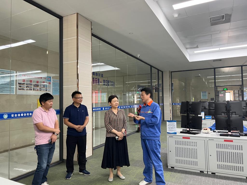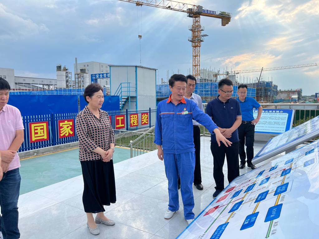 在炉桥镇安徽华塑股份有限公司,张志华一行在安全副总经理张朗的陪同下参观了氯碱厂中控室,了解自动化控制系统,听取了公司生产经营以及二期建设推进情况的汇报。张志华肯定了华塑股份在水处理与智能化工厂建设方面的做法,要求华塑股份抓好安全管理,优化厂容厂貌,不断提升企业形象。