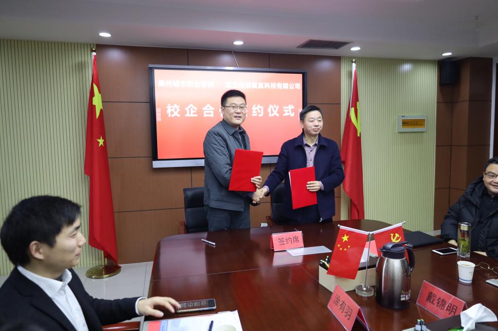 汪上代表学校分别与武汉伟创聚赢科技有限公司总经理陈强、安徽中科英才科技发展有限公司总经理谢绍华签署了合作协议。