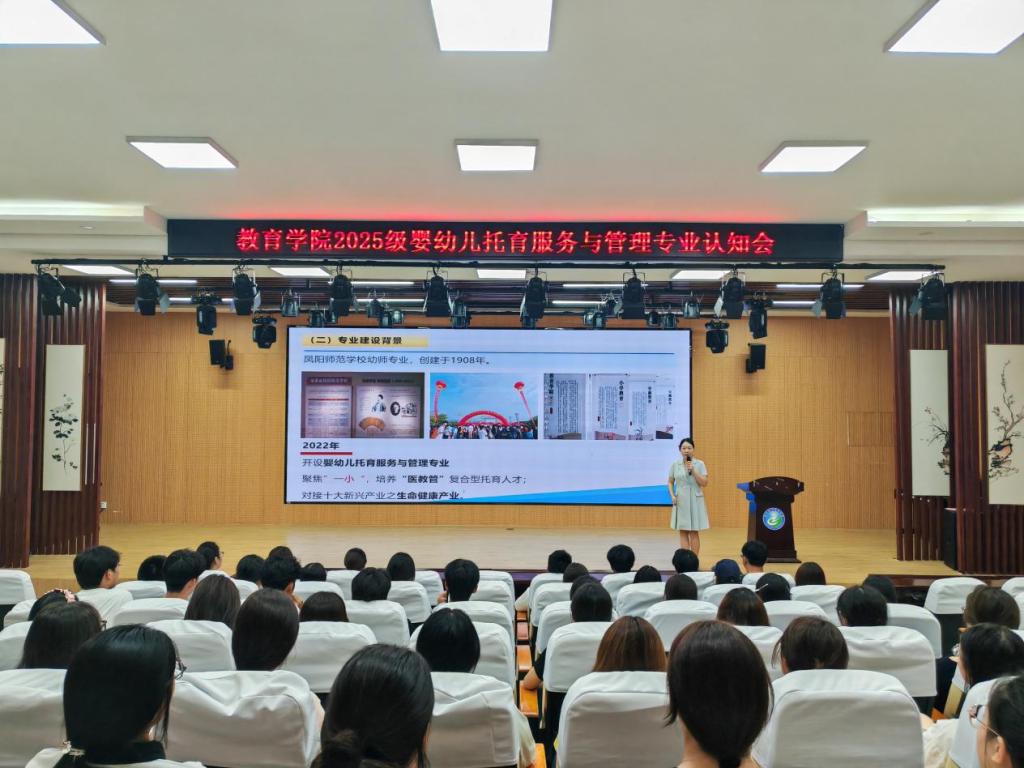为帮助新生全面了解所学专业,明确学习目标与职业发展方向,9月11日晚,教育学院在报告厅举办了2025级婴幼儿托育服务与管理专业认知会。教育学院婴幼儿托育服务与管理专业带头人戴月琦以及2025 级婴幼儿托育服务与管理专业新生及辅导员参加了此次会议。