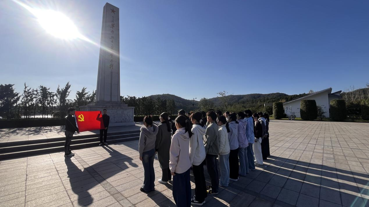 下午,学生党支部书记王艳带领学生党支部支委,和20名同学来到镜园洪源广场,带领预备党员在人民英雄纪念碑前举行了庄严的入党宣誓仪式。