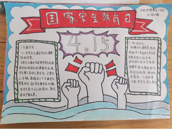 19护理高专2班组织同学们集体学习国家安全日的相关知识,章娟、刘淑晴同学更是用纸和笔制作出属于她的宣传海报,展示了一位护理专业大学生心中满载的责任和对医务工作者的敬仰。