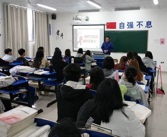 班会课上,各班班主任、辅导员通过多媒体教学,以视频,图片的形式向学生介绍春季常见的传染病的预防以及艾滋病相关知识,对 “什么是春季传染病”、“春季传染病的传播途径”、“春季传染病的预防方法”“、艾滋病的相关知识与预防”等知识进行讲解,并且向同学们传达了预防疾病15字诀:“洗净手、喝开水、吃熟食、常通风、晒衣被”,要求学生在日常生活中要注意个人卫生,养成良好的饮食习惯,做好卫生值日,保持环境清洁,经常锻炼身体,增强身体素质。此外,还总结几种预防艾滋病方法:一是做到洁身自爱、遵守性道德,这是预防经性途径传染艾滋病的根本措施;二是远离毒品;三是不去消毒不严格的医疗机构打针,拔牙、针灸、手术等;四是避免日常工作,生活中沾上伤者的血液;五是不使用未经检验的血液制品,减少不必要的输血。