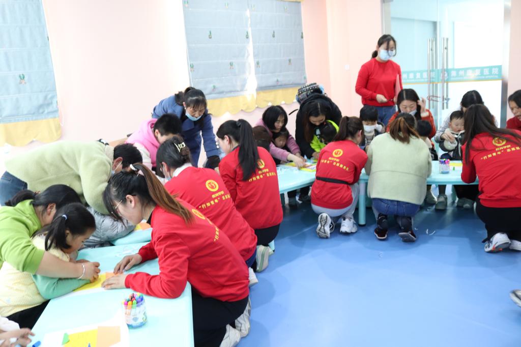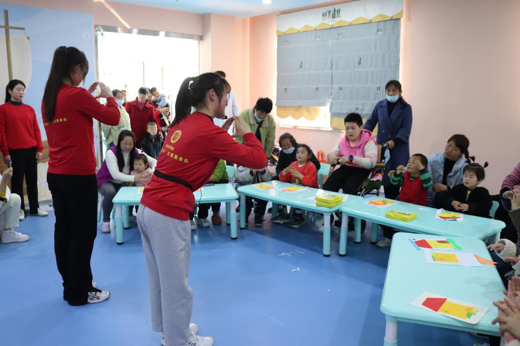 随后志愿者带领中班幼儿认识三角形,圆形,正方形,并通过积木、拼图等玩教具让幼儿与家长参与其中,最后志愿者与幼儿一起做手指操,在玩中学、玩中做。志愿者还带领小班幼儿自我介绍、认识水果,将随行带来的绘画教具发给幼儿们,辅助家长和幼儿给水果卡片涂上颜色,空白的水果卡片在家长和幼儿的填充下,变成了一幅幅充满创意的彩色绘画,最后和幼儿一起歌曲律动,放松双手。