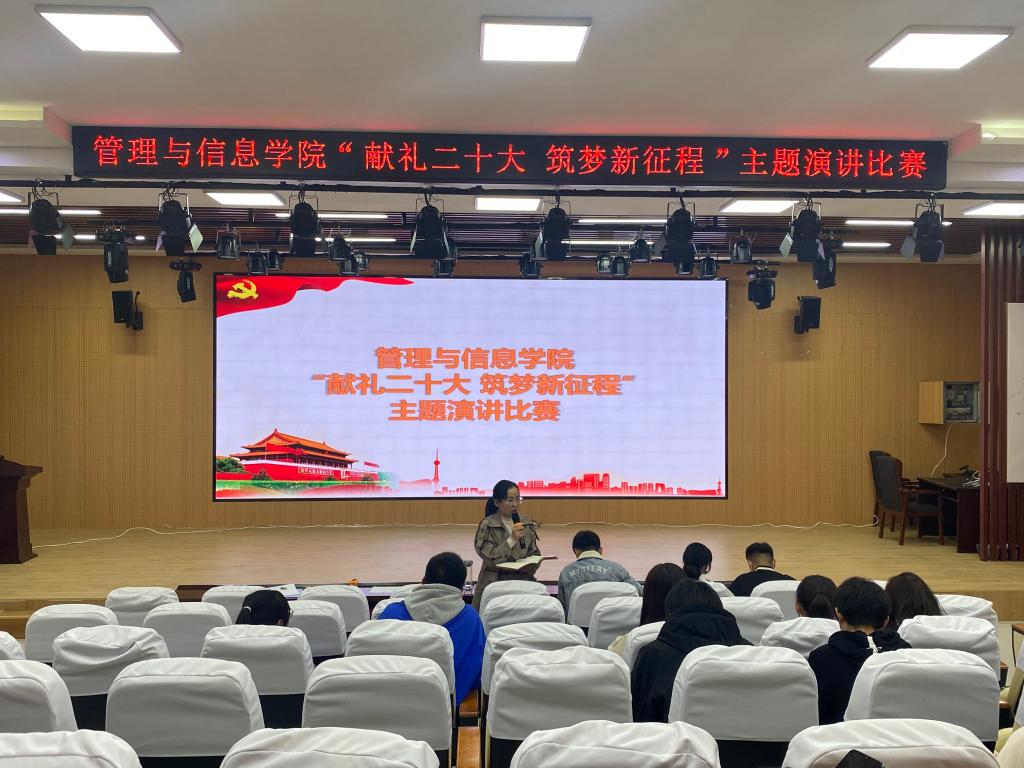 为深入学习贯彻党的二十大精神,管理与信息学院举办“献礼二十大 筑梦新征程”演讲比赛,管理与信息学院党总支副书记秦海娇、团总支书记杨静怡、各班学生代表参加。