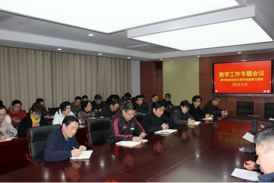 3月21日下午在图文中心第四会议室召开了教学工作专题会议。会议由党委委员、教务处处长王树青主持,党委副书记、院长张志华到会并作重要讲话,教务处、教学督导室、实验实训中心、学生处、计算机中心、团委、组织人事处主要负责同志以及各系部主任、分管教学工作主任、教学及实训秘书等相关人员参加了本次会议。