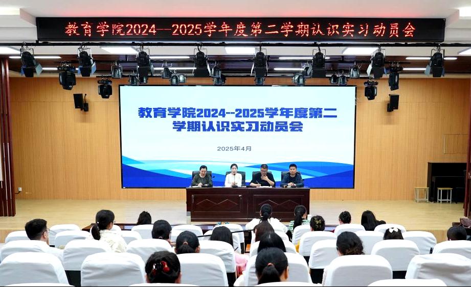 为扎实推进2024-2025学年教育学院学生认识实习工作,明确实习目标与职责。4月21日下午,教育学院在报告厅召开认识实习动员大会。教育学院院长徐立娟,党总支副书记陈立超,副院长刘明辉、袁远,全体辅导员(班主任)及认识实习指导教师参加会议。会议由刘明辉主持。会议伊始,刘明辉对本次认识实习的具体安排进行全面部署。他详细介绍了实习的两种主要方式,明确学生需完成的实习日志、调研报告及反思总结等任务,并强调指导教...